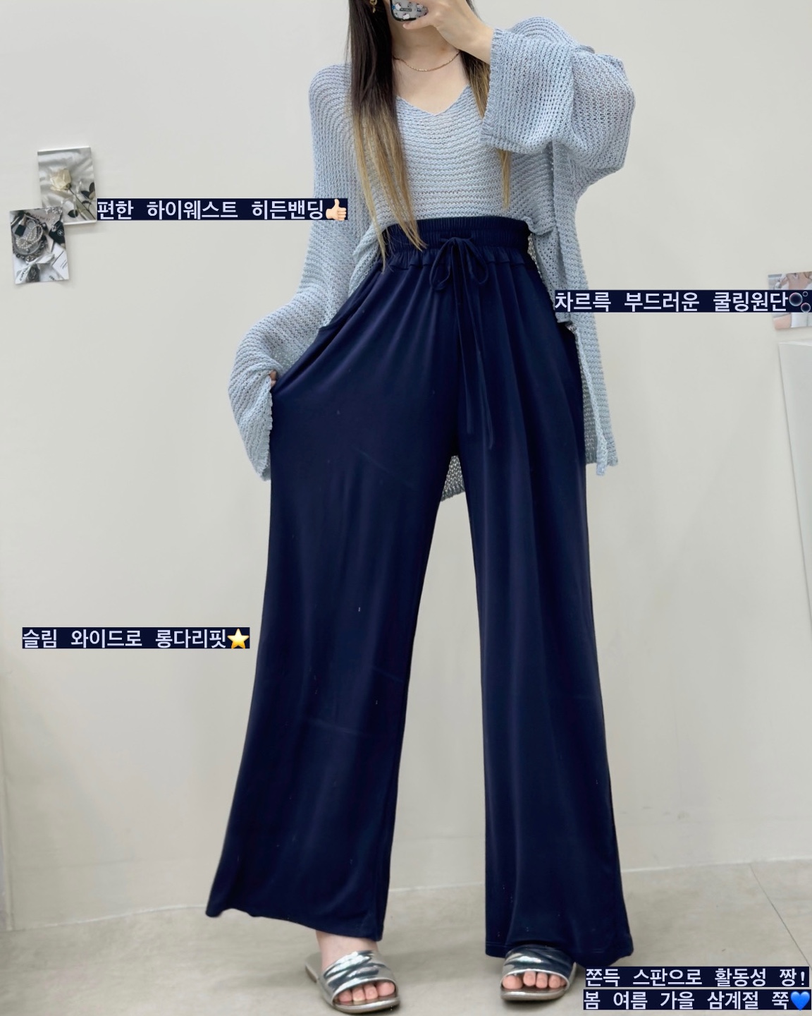 [차르륵핏/모델핏보장!]쿨링 찰랑 밴딩 하이웨스트 스판 와이드 롱팬츠 통바지 트레이닝 하의 봄 여름 데일리 면바지 8color