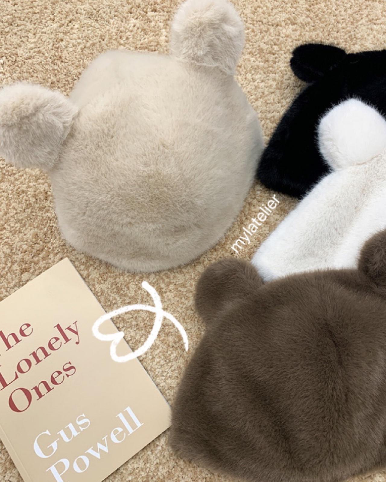 기요미 토끼 앙고라 버킷햇 트레퍼 털 모자
