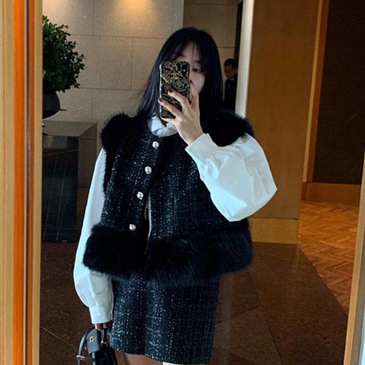 국내제작 블링크 밍크 진주 트위드 퍼 조끼 하객룩 모임룩 연말룩
