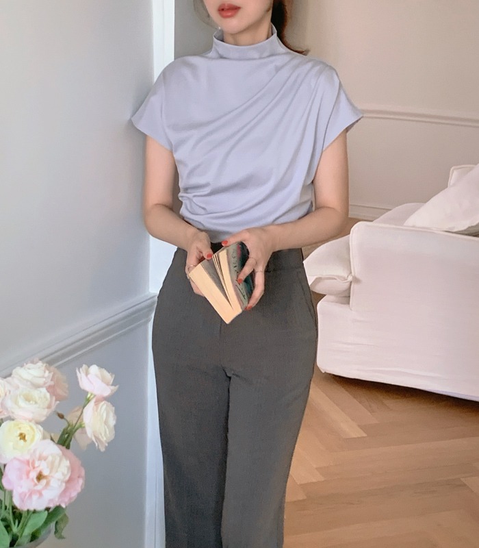 [🌿하객룩/반팔티] 에트나 셔링 하프넥 반팔 티셔츠