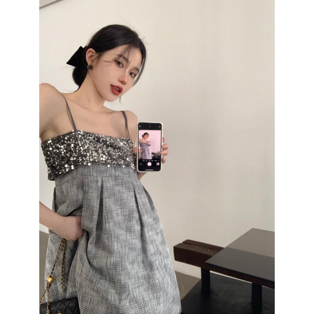 럭셔리 스파클링 그레이 회색 실버 루즈 파티 기념일 휴가 생일 바캉스 미니 원피스