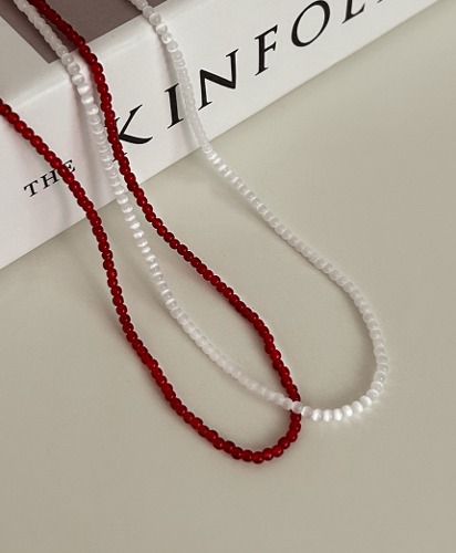 써지컬 레드/화이트 비즈 원석 초커 목걸이