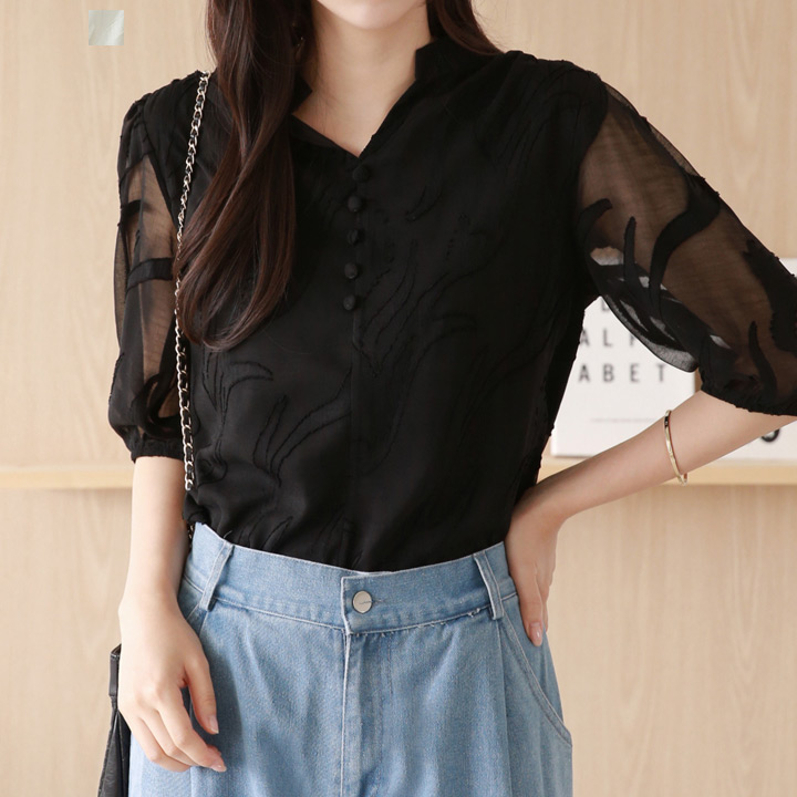 [당일출고] 데풀 슬리브 시스루 포인트 블라우스