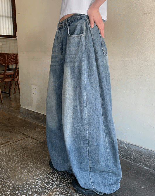 켄시 사이드 폴딩 워싱 와이드 데님 팬츠 (5color)