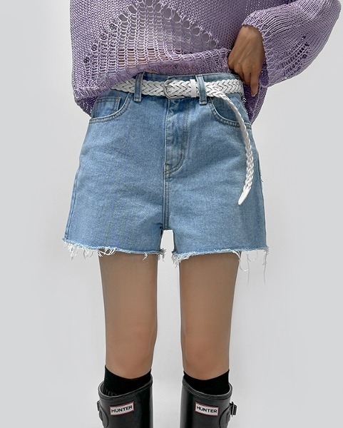 위크 기본 베이직 청 반바지 밑단 컷팅 데님 숏 팬츠 (2컬러)