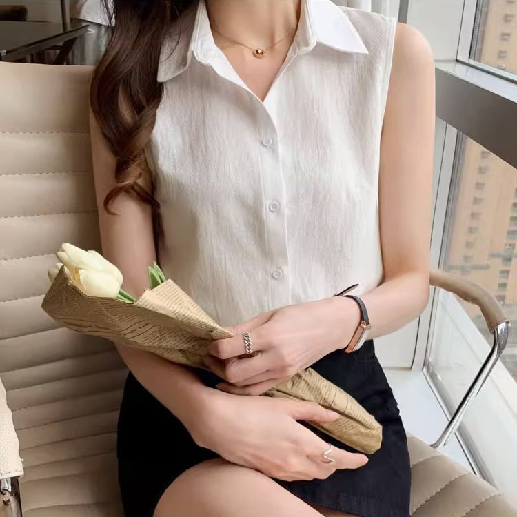 여성 카라넥 민소매 블라우스 얇은 여름 나시 셔츠 블랙 화이트