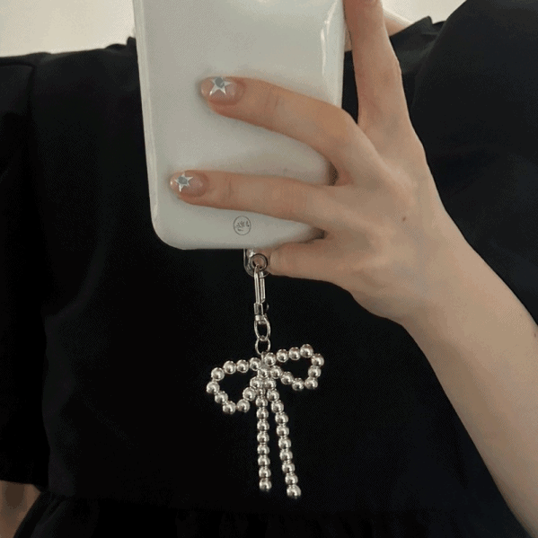[태그홀더포함/2타입] 실버볼 하트 리본 키링 볼드 폰꾸 백꾸 휴대폰꾸미기 가방꾸미기