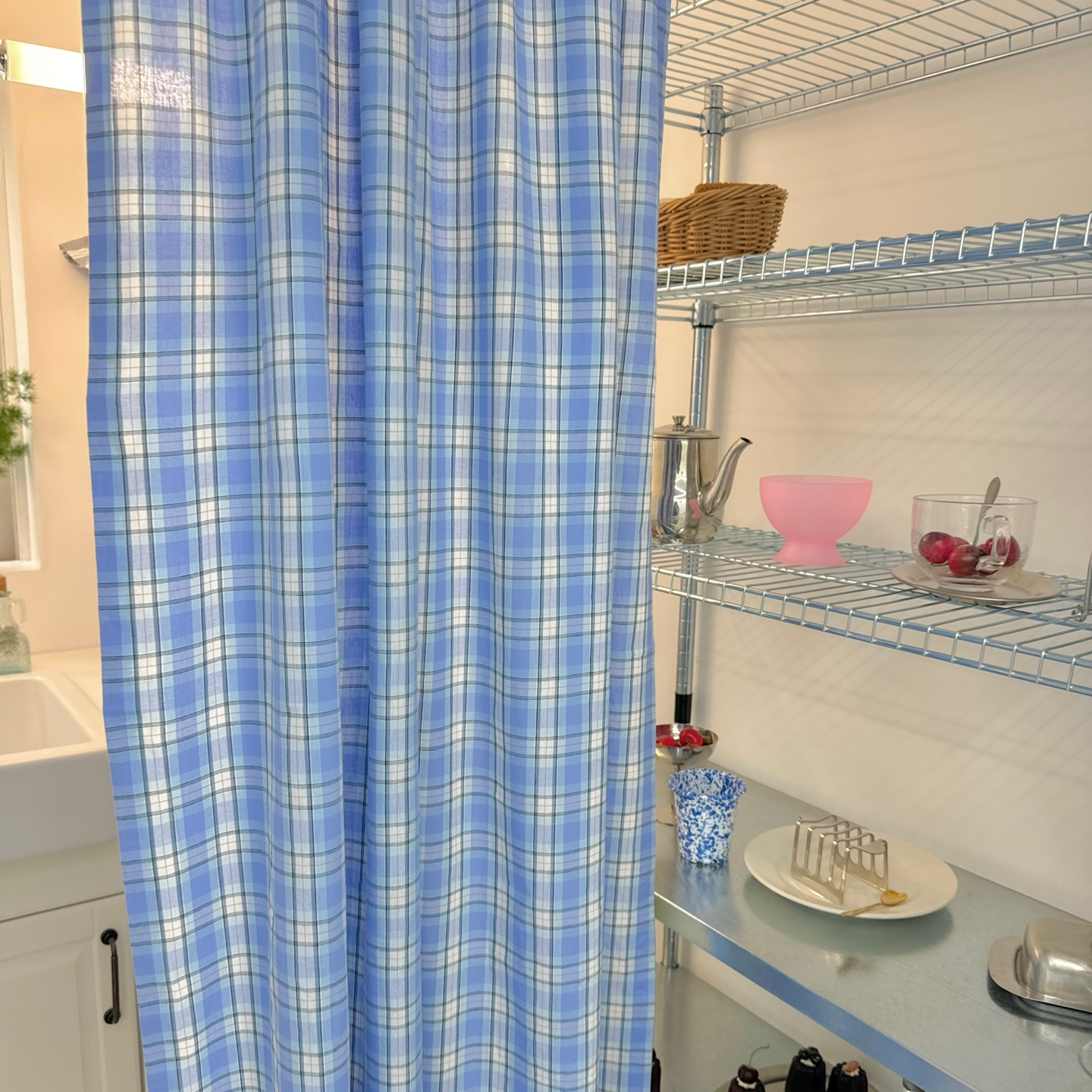 blue rain check curtain 빈티지커튼 거실 현관 커튼 반창커튼