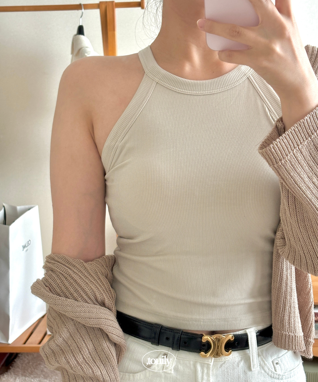 [캡내장/슬림핏/볼륨업] 골지 홀터넥나시 캡내장 이너나시 캡나시 니트민소매 (5color)