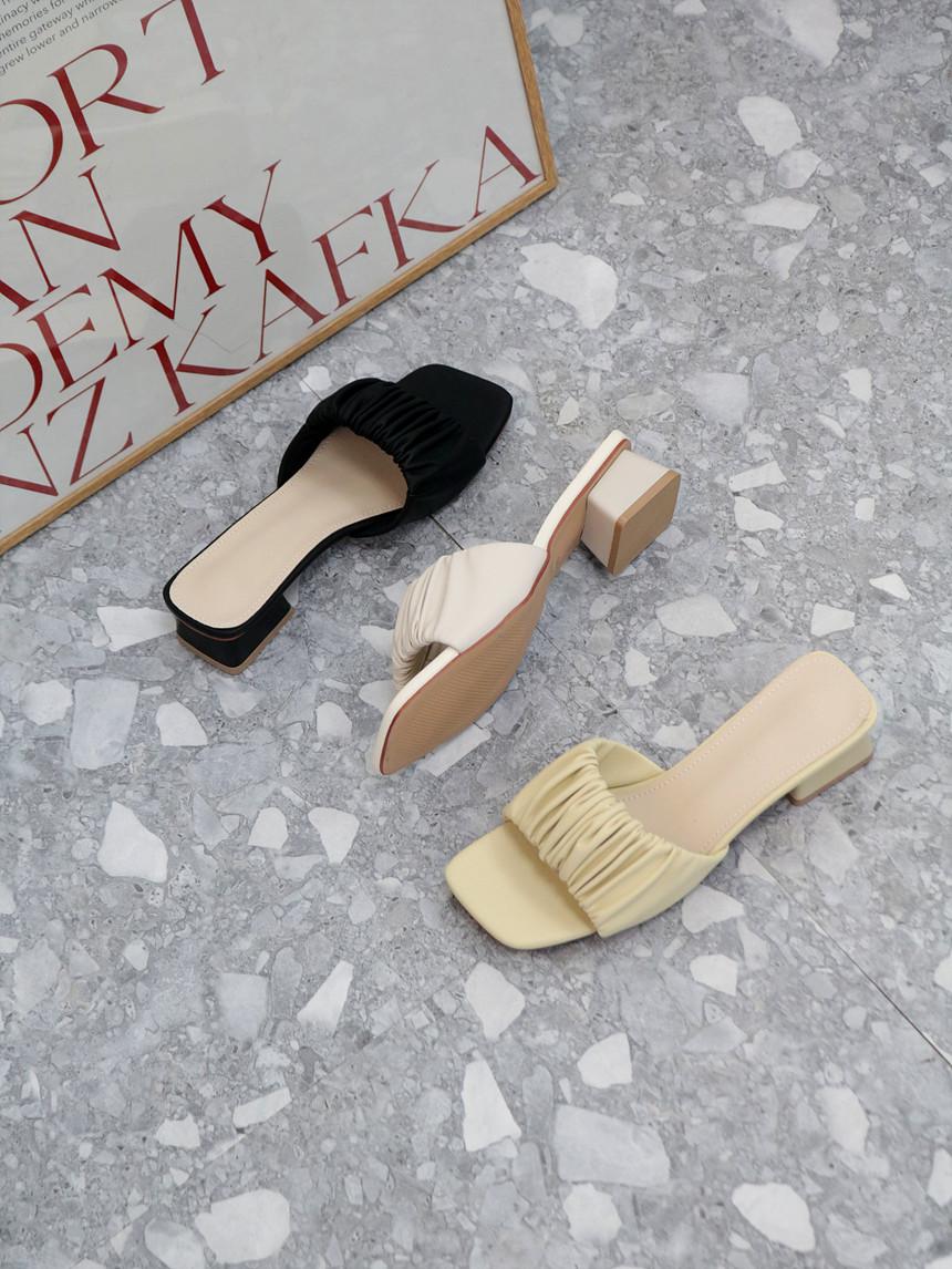 라운슈 스퀘어토 셔링 스트랩 뮬 힐 3.5cm