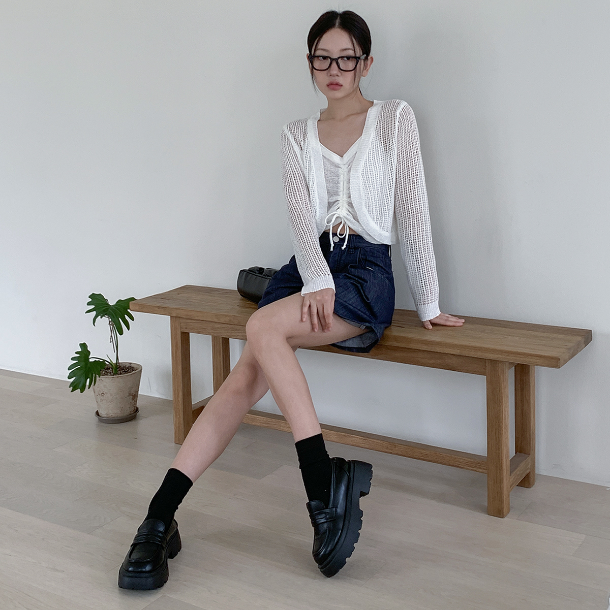 나레루 원핀턱 생지 논메이드 데님 숏 팬츠