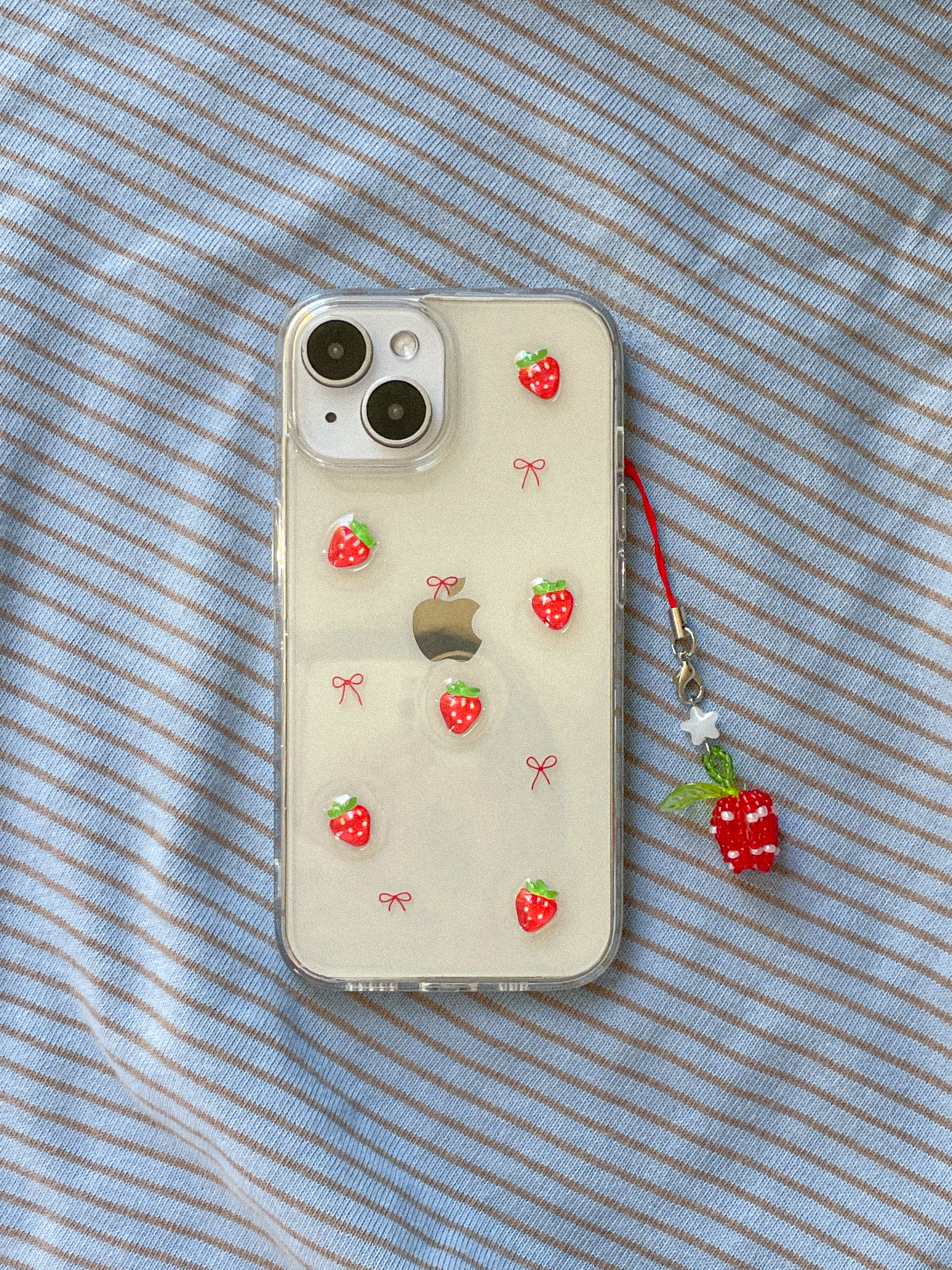 딸기 리본 레진 아이폰 갤럭시 케이스 딸기 비즈 키링 핸드폰키링