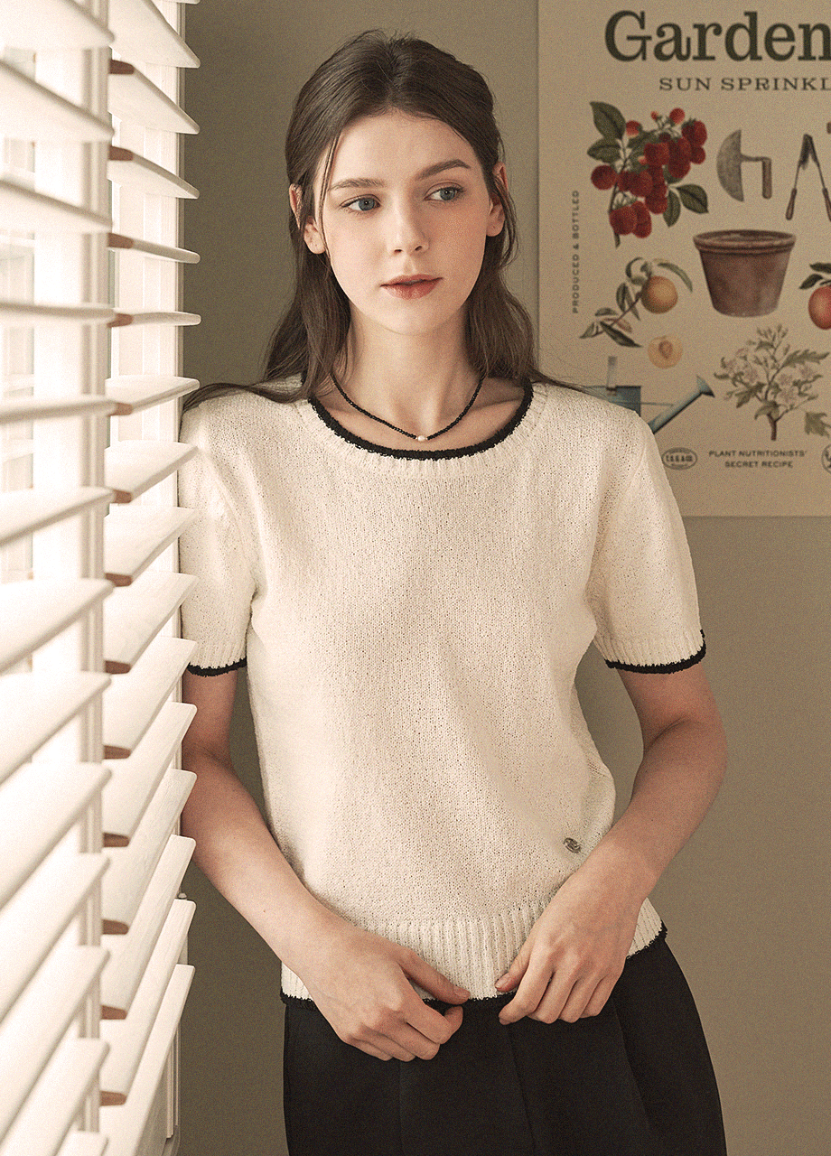[44-120] Sprinkle Boucle Knit 스프링클 부클 니트 (여름-데일리룩-꾸안꾸-마실룩-출근룩-하객룩-장마철룩-배색-기본니트-부클니트-라운드넥-베이직-빅사이즈-자체제작)
