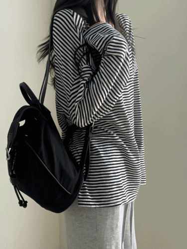 [보호본능핏/장마템] 단가라 스트라이프 입술넥 오버핏 긴팔티셔츠 t (4color)