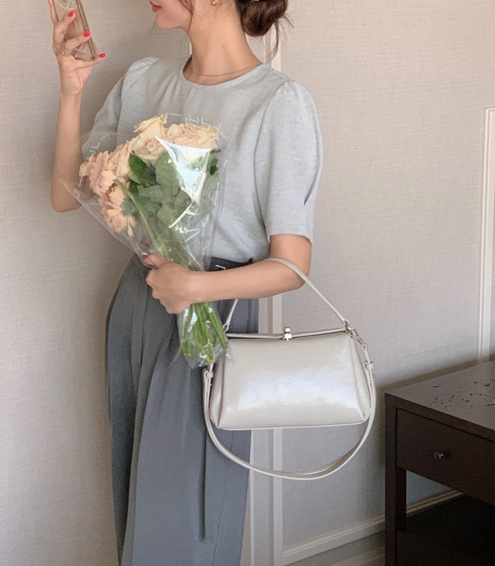 당일발송[🌿하객룩/여름블라우스][MADE] 루젠 트위드 퍼프 블라우스