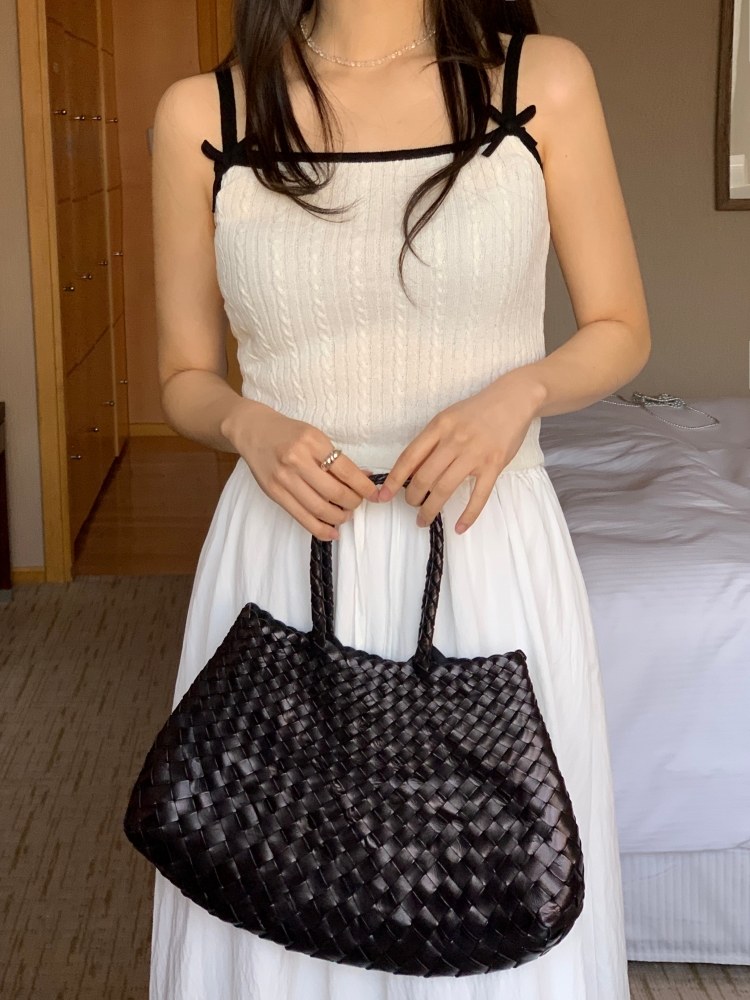 miel 미엘 리본 꽈배기 니트 슬리브리스 4color