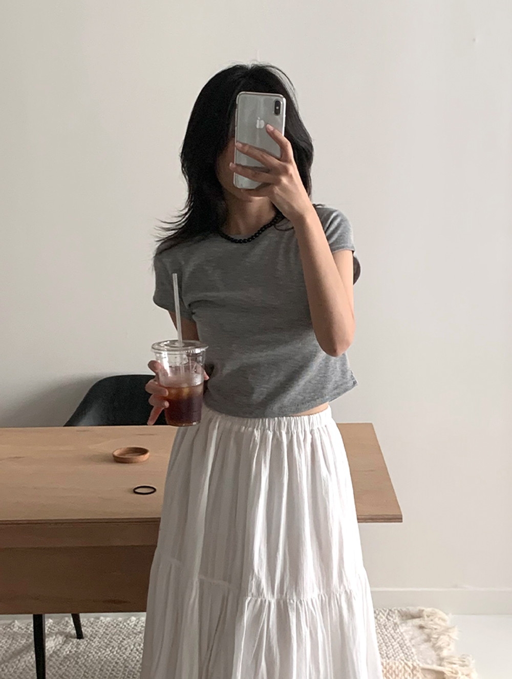 (무료배송)Dio cropped cap T-shirt휴양지룩/무배/동남아여행/출근룩/크롭/캡소매/티셔츠/골지