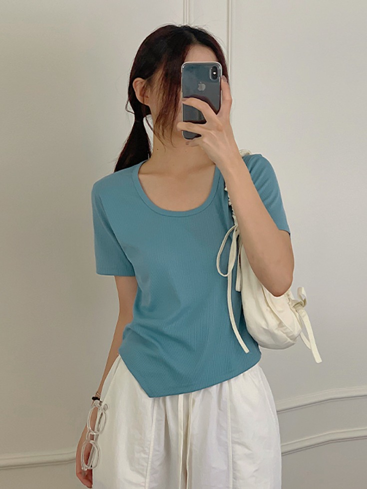 [44-120] 린브디니 스판 골지 유넥 언발 티셔츠( 여름-데일리룩-데이트룩-캐주얼룩-러블리룩-공항룩-휴가룩-휴양지룩-바캉스룩-비치룩-마실룩-빅사이즈-120사이즈-자체제작-반팔티셔츠)