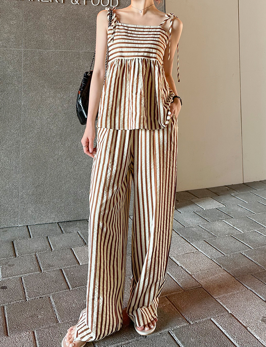 베이set 스트라이프 나시 블라우스 와이드 밴딩 팬츠 투피스 여름 코디세트 바캉스 휴양지 휴가룩 2color