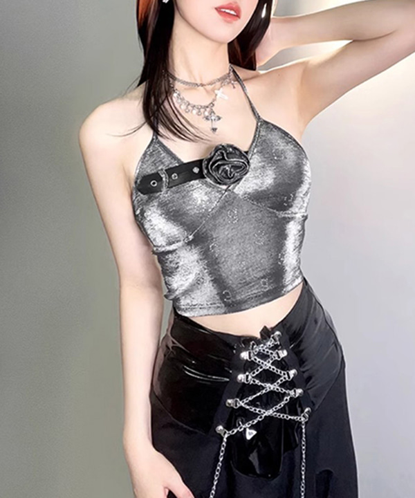무료배송 딥그레이 장미벨트 뷔스티에 #실버
