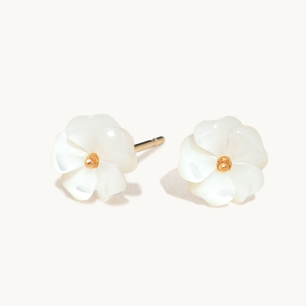 14K 화이트 꽃 자개 귀걸이