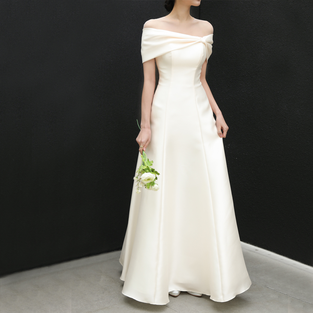 [대여] 오프숄더 미카도 실크 본식웨딩드레스 스몰웨딩 이브닝 피로연드레스