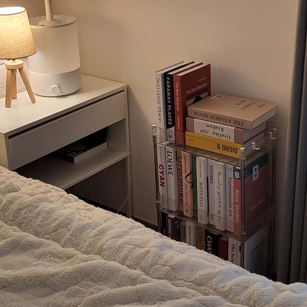 북트롤리 북카트 북트레일러 이동식 간이 투명 책꽂이 3단