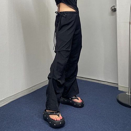 실키 리본 터킹 와이드 팬츠 (2color) - 핀턱 터킹 링클 주름바지 실크바지 슬랙스 와이드팬츠 통바지 일자바지 긴바지 밴딩바지 리본밴딩 리본끈