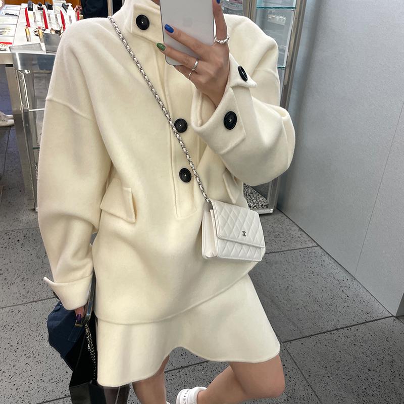 울자켓 투피스 아이보리 니트세트 투피스 하이넥 자켓 코디세트 엄마옷 여자면접복장