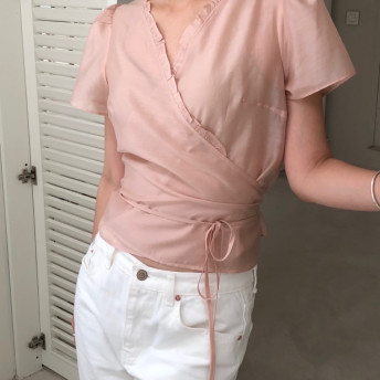 [검당일] founders 파운더스 비쥬 랩 블라우스 여름 반팔 프릴 랩 허리끈 BL (3colors)