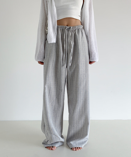 [패턴포인트] 린넨 ST 와이드팬츠 (여름/썸머/스트라이프/밴딩/스트링/트레이닝/바지/살안타템/휴양지/바캉스)