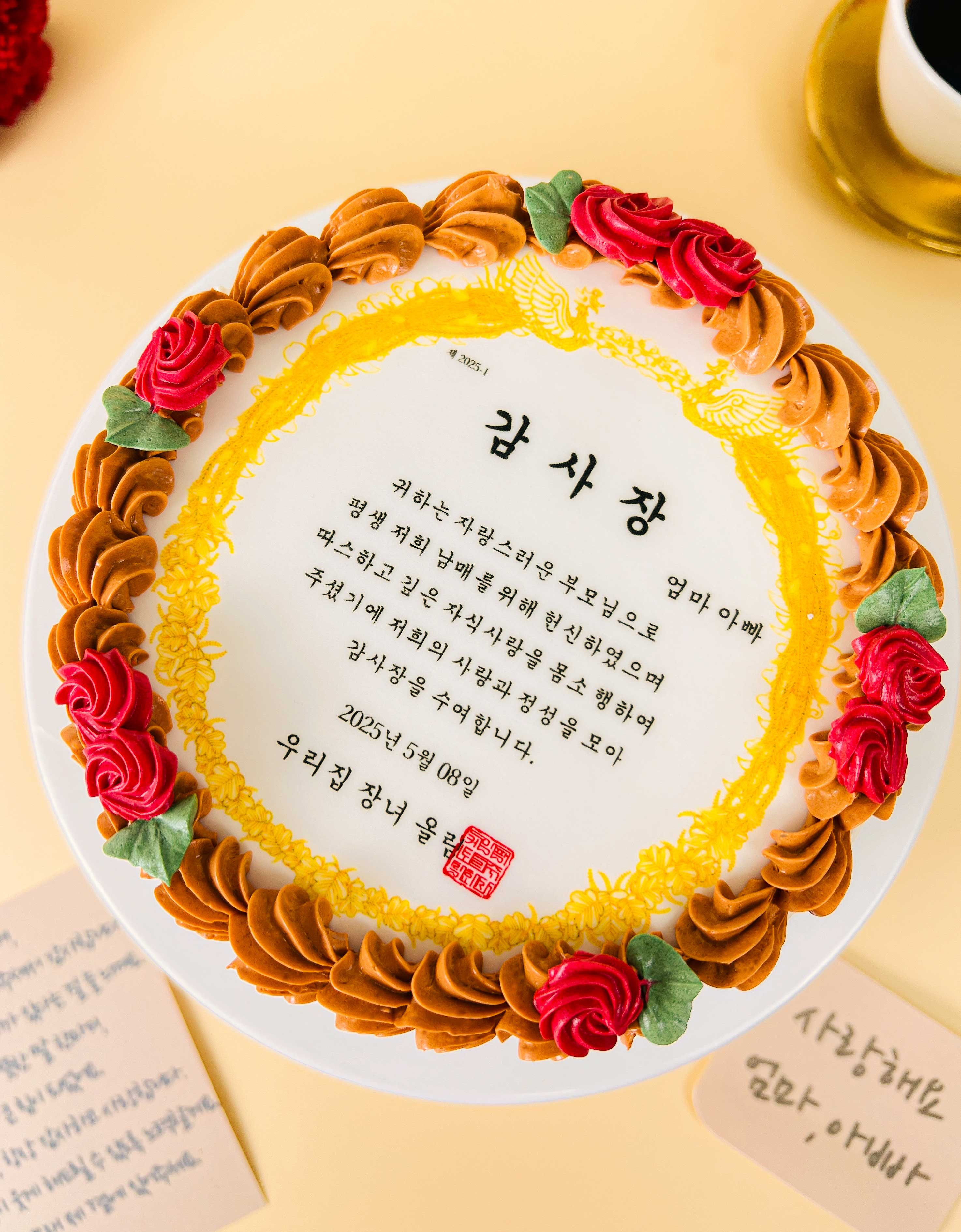 크림 원형 감사장 주문제작 레터링 스승의날 부모님 생일 선물 전국 택배 배달 맞춤 케이크