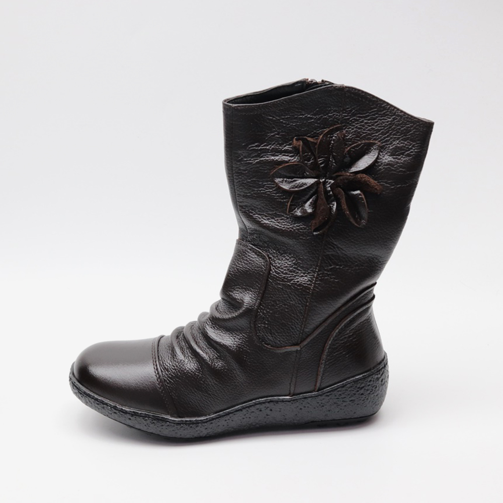 슈리오 여성 겨울 소가죽 기모 미들 따뜻한 부츠 5cm