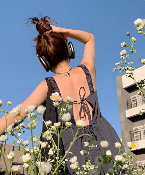 [자체제작] [뒷리본🎀] 나시 백리스 밴딩 스퀘어넥 나일론 원피스 바스락 뒷밴딩 뒷트임 뷔스티에 장마룩 원피스