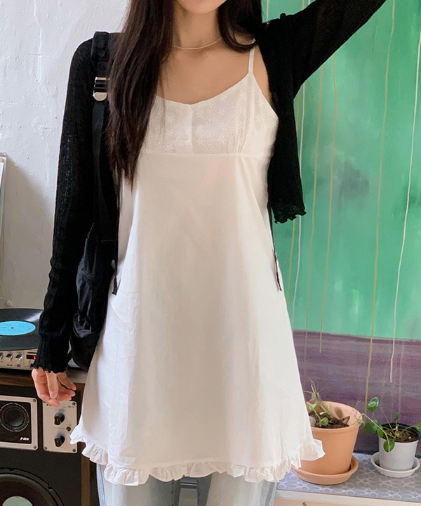 화이트 플로럴 자수 프릴 레이어드 원피스