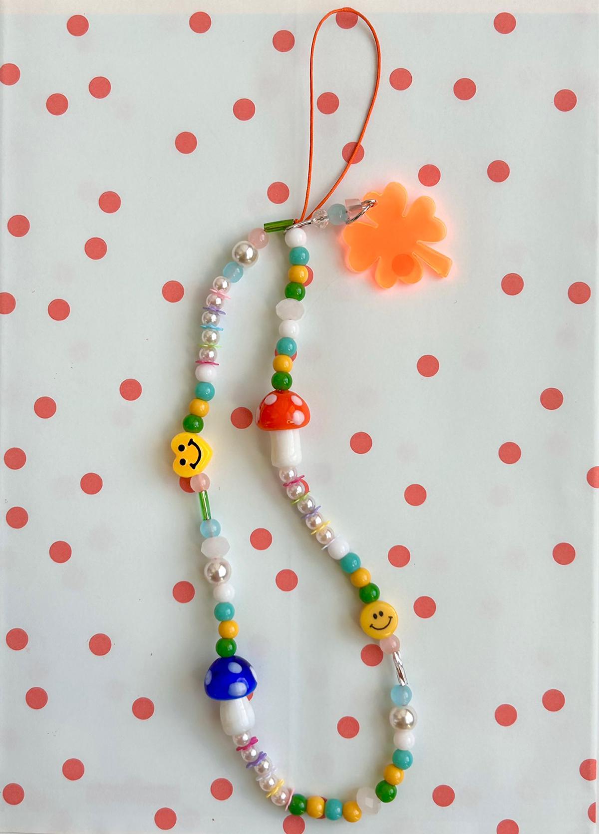 미미슈슈 네잎클로버 머쉬룸 스마일 비즈 폰스트랩