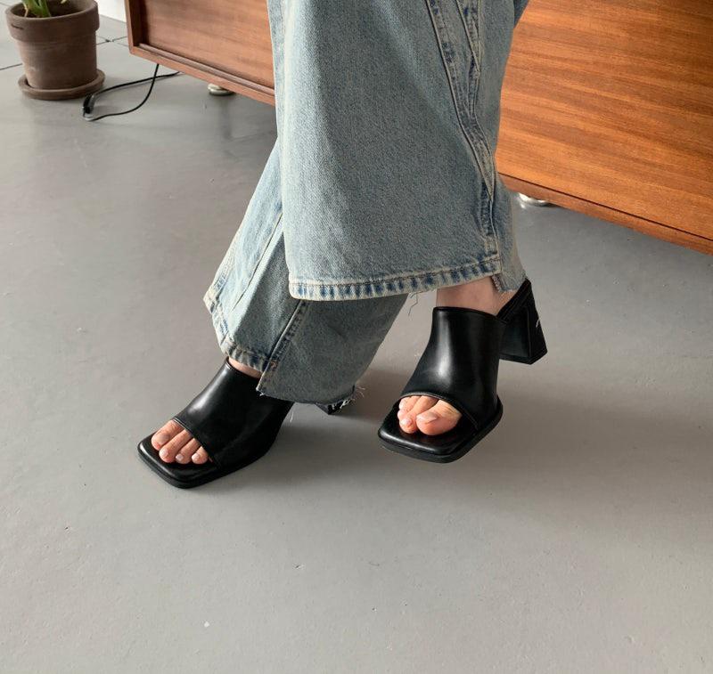 발볼넓은분들!! 👡2col 여름 8cm 슬리퍼 청키 발볼넓은 발등높은 스퀘어코 뮬 통굽 로퍼 발편한 아이보리 가죽 스트랩 키높이 구두 힐