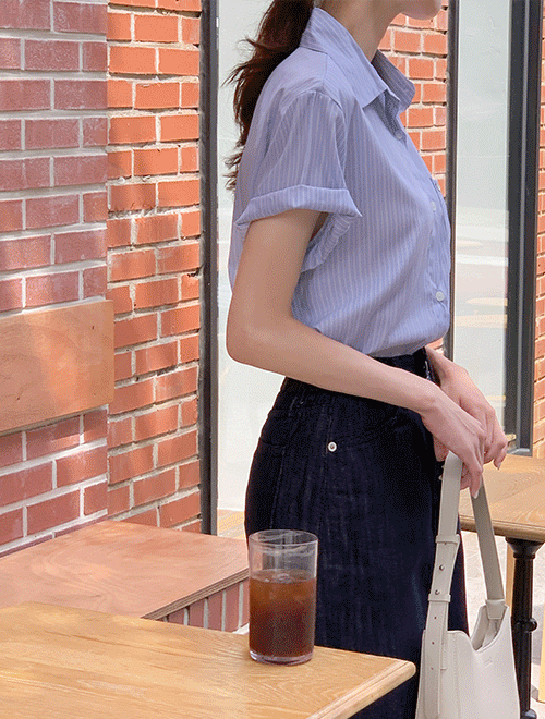 [기획특가]#여름💙 뮤텐 자개 스트라이프 텐셀 반팔 셔츠