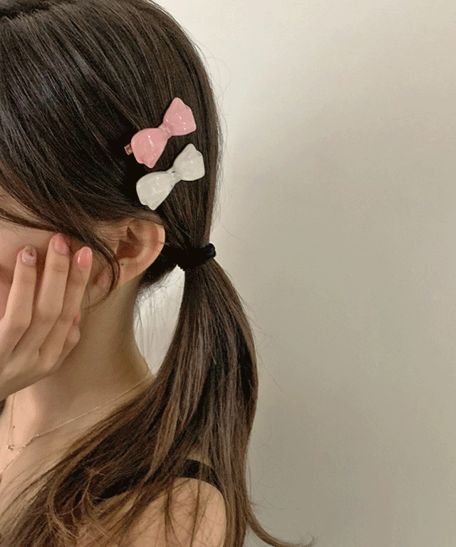 [ 6color / 자체제작 ] 호마이카 리본 파스텔 러블리 옆머리 포인트 헤어핀 머리핀