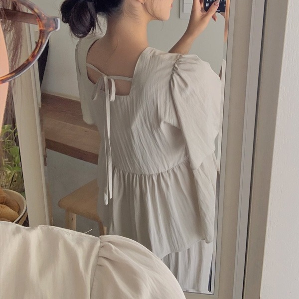 [여름셋업/쿨레이온🧊][MADE] 몽트 스퀘어넥 프릴블라우스+밴딩 세미와이드팬츠 투피스set(44~110) (썸머세트-여름세트-빅사이즈셋업-블라우스세트-팬츠세트)