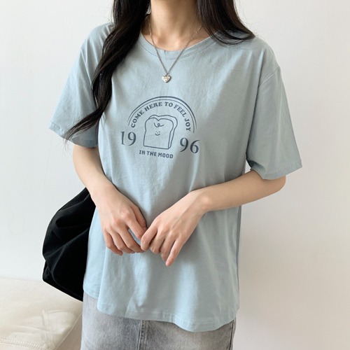 식빵티셔츠 - 귀여운 식빵 일러스트와 텍스트 디자인으로 캐쥬얼한 포인트가 매력적인 반팔 라운드넥 면 티셔츠