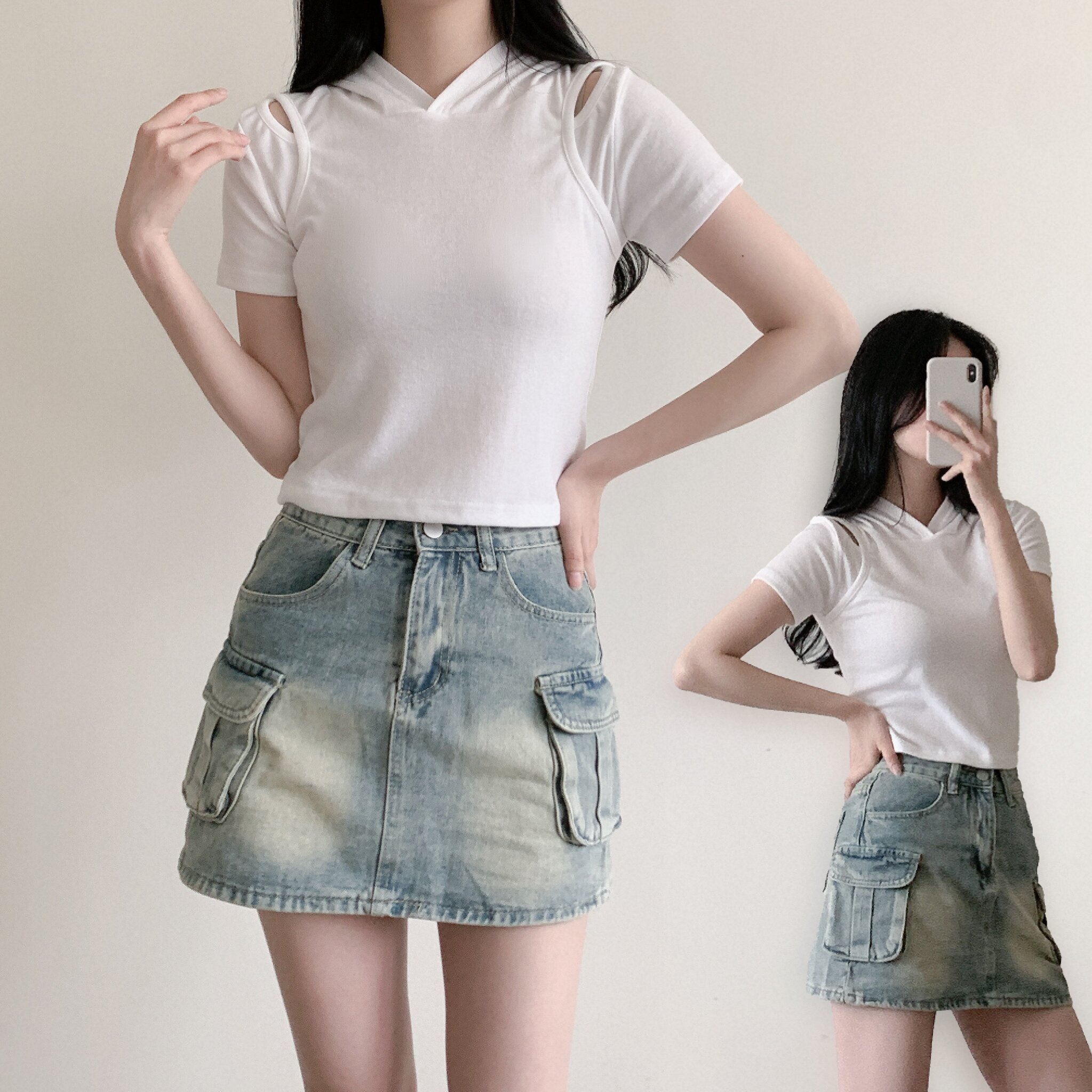 [4color/데님sk] 포켓 빈티지 하이웨스트 카고 데님 코튼 미니 스커트 치마 (4color)