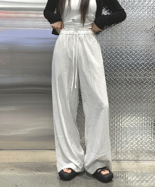 유메 쿨링 나일론 배색 밴딩 와이드 팬츠 -3color