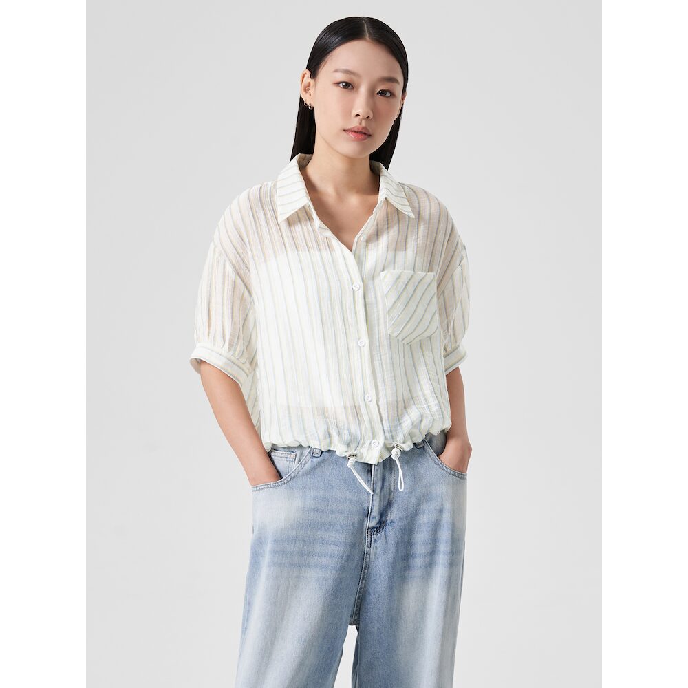 컬러 배색 스트라이프 셔츠 아이보리 (354765MB7Q)