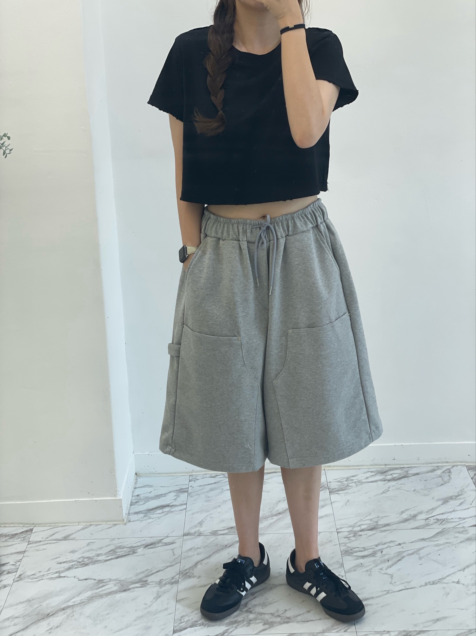 버뮤다 팬츠 밴딩 쭈리 스트링 오버핏 와이드 공용 5부 빈티지 포켓 트레이닝 바지