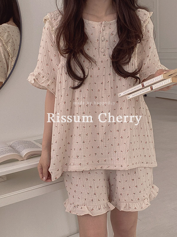 🌸여름 요루면 🌸 H.made✔ 리썸 체리 잠옷 요루면 반팔 원피스 투피스 파자마 세트 2color 2type 직진배송