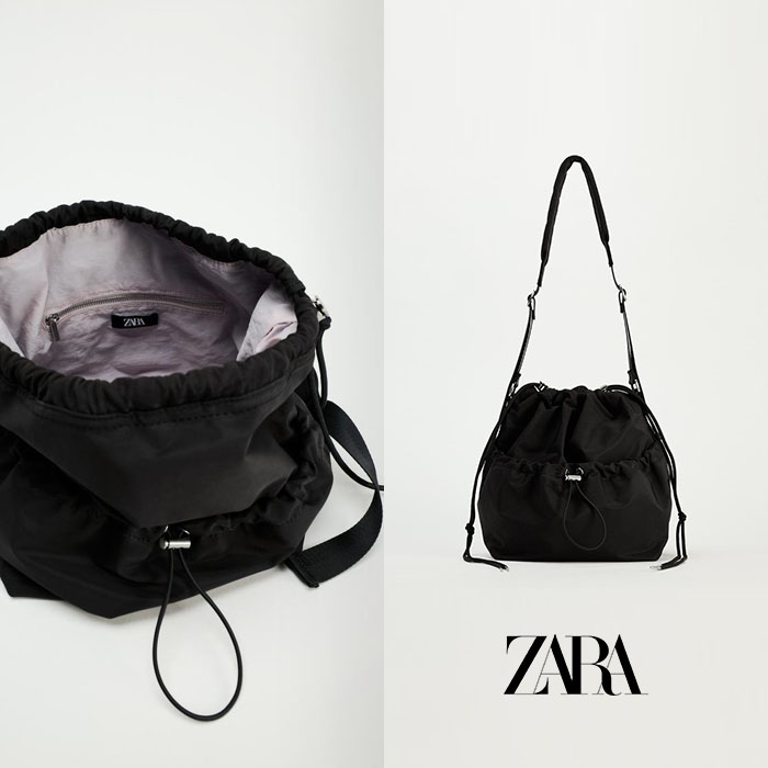 ZARA 자라 블랙 나일론 버킷백 6822/310