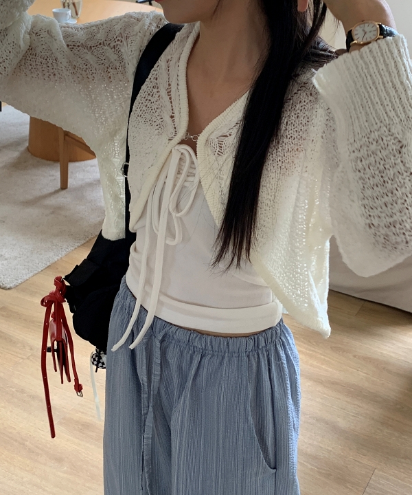 [🤍보들/여리🤍] 엠마 여름 그물니트 볼레로 크롭 가디건 휴양지 살안타템 3 color