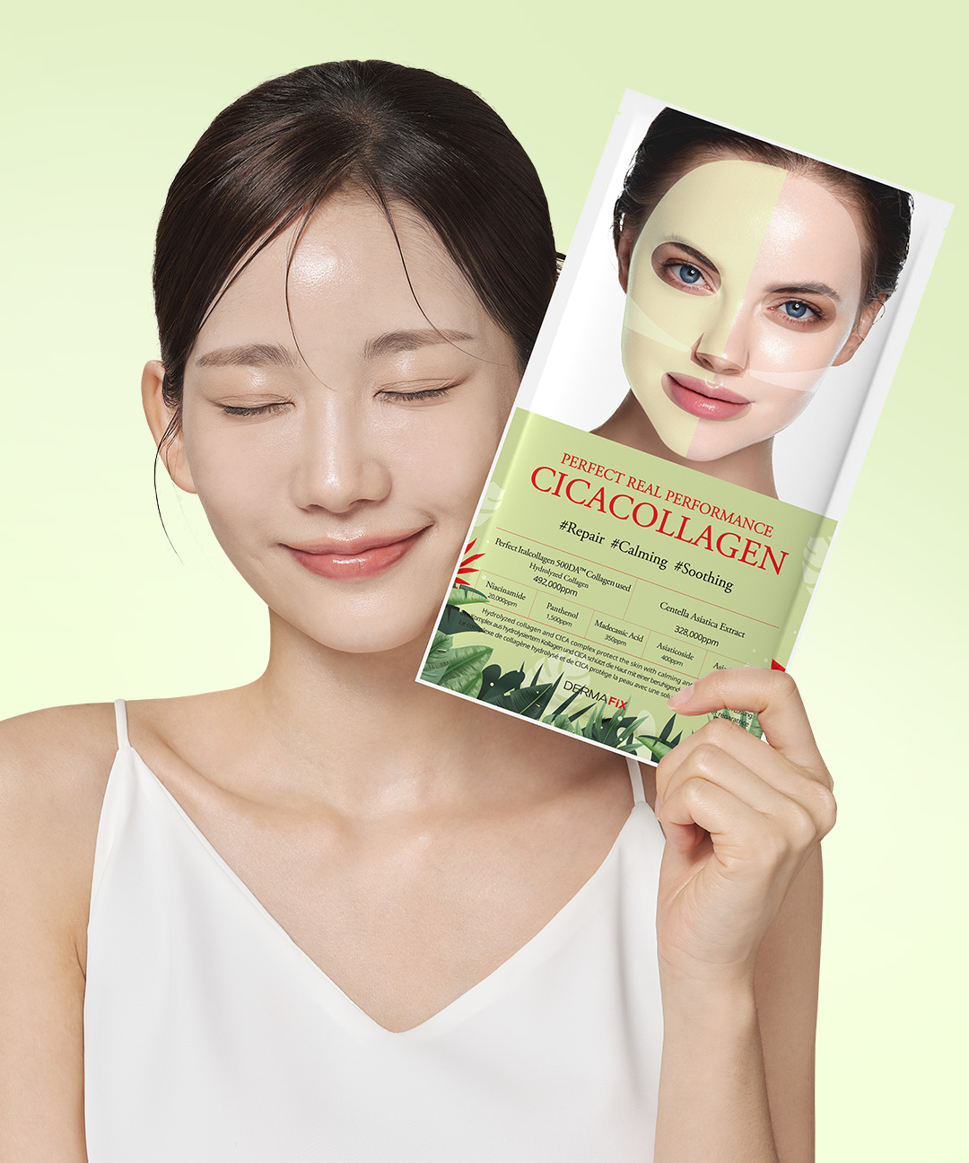 화장품법에 따라 기재, 표시하여야 하는 모든 성분하이드롤라이즈드콜라겐(492,000ppm), 병풀추출물(328,000ppm), 아크릴레이트코폴리머, 글리세린, 나이아신아마이드(20,000ppm), 아이리쉬모스가루, 캐롭검, 판테놀(1500ppm), 아시아티코사이드(400ppm), 마데카식애씨드(350ppm), 아시아틱애씨드(250ppm), 인도멀구슬나무잎추출물, 소듐하이알루로네이트, 인도멀구슬나무꽃추출물, 베타인, 메틸프로판다이올, 알란토인, 구아검, 펜틸렌글라이콜, 셀룰로오스검, 포타슘클로라이드, 옥탄다이올, 1,2-헥산다이올, 아데노신, 에틸헥실글리세린, 덱스트린, 카프릴릴글라이콜, 소듐파이테이트, 정제수, 다이포타슘글리시리제이트, 세라마이드엔피, 잔탄검, 페녹시에탄올, 향료