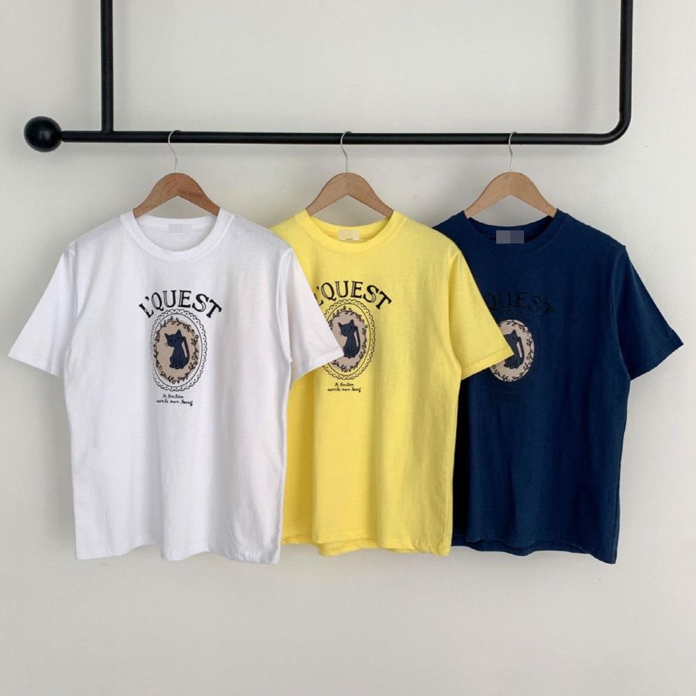 여름 여성 반팔티 블루캣 고양이 패치 나염 레터링 반팔 티셔츠